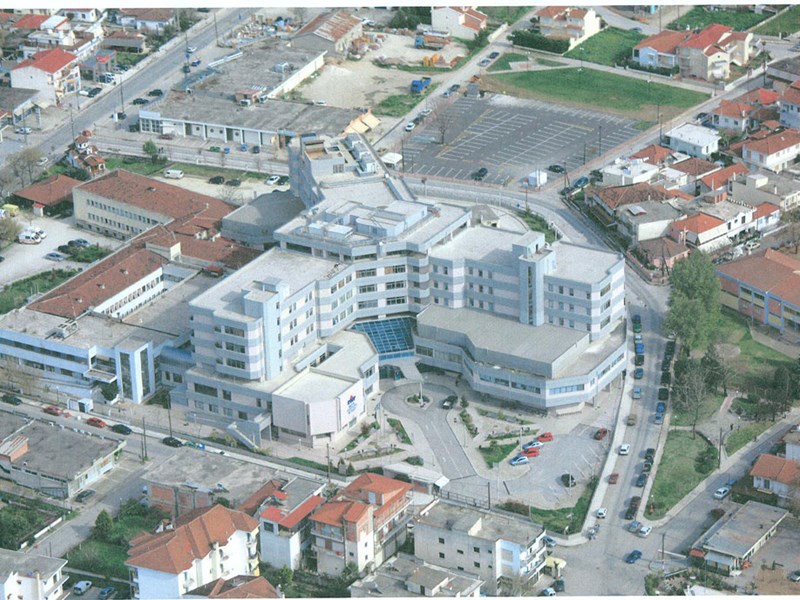 Construction of a Hospital of 26.052m² total area with a capacity of 342 beds. The Hospital consists of pathology, pediatrics, obsterics, cardiology, surgical, orthopedic, urological and ophthalmological clinis, 9 operating rooms, 12 intensive care beds, 6 MLS intensive care beds, maternity hospital, dialysis unit, thalassemia unit, blood donation unit, physiotherapy unit, emergency department, medical labs, pathology lab, CT scan, kitchens, morgue and sterillizing materials-tools department.