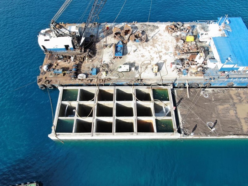 Construction of new sections at the port of Athinios for the service of conventional ships and high-speed vessels.