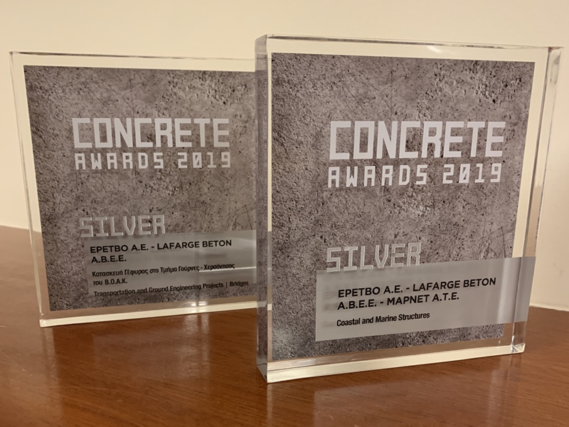 - Για την κατασκευή Προκατασκευασμένων Κυψελωτών Κιβωτίων (CAISSONS) για την Επέκταση του Λιμένα Αθηνιού στη Σαντορίνη έλαβε το SILVER βραβείο στην ενότητα Coastal and Marine Structures